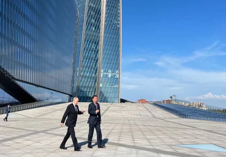 На совещаниях она появлялась в строгих костюмах и тёмных очках, уверенно докладывала президенту, куда ушли миллиарды и как скоро башня «взлетит». Когда в 2023 году Путин впервые поднялся на смотровую площадку «Лахта Центра», рядом с ним шла именно она, а не Алексей Миллер. На фото — президент, стеклянная башня и Илюхина, в чьих руках сосредоточены ключи от самого дорогого здания Европы.
