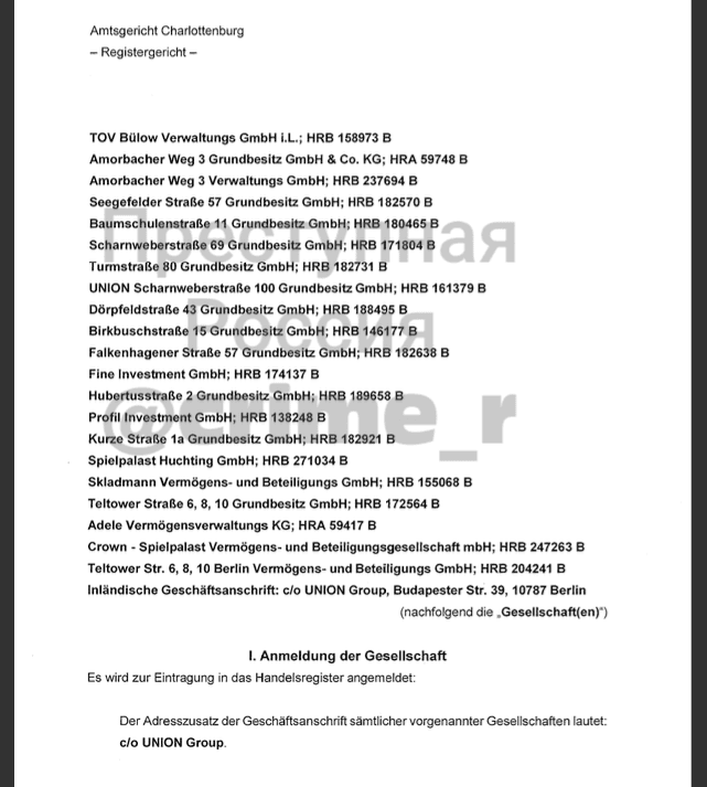 Эта компания управляла фирмой UNION Landsberger Allee 42 GmbH & Co. На Landsberger Allee, 42, в Берлине расположен небольшой участок земли, где ещё в 2020 году началась масштабная стройка восьмиэтажного отеля. Терпеть неудобства местным жителям приходится до сих пор, поскольку Шендрик с партнёрами устроил в Берлине натуральный долгострой: в октябре этого года здание всё ещё находилось в строительных лесах.