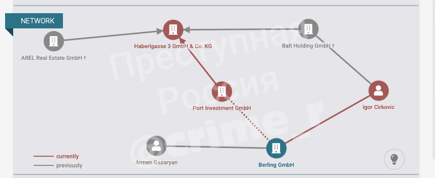 При этом австрийская компания входила в целую сеть аффилированных между собой юрлиц: так, ещё 25% в «АК “Электросевкавмонтаж”» принадлежит IMT Montenegro Budva (Черногория), которая записана на жителя Сербии Игоря Чирковича. Он же владеет ещё двумя австрийскими фирмами — BERLING GmbH и BaltHolding GmbH. А RAVA GmbH и BaltHolding GmbH, в свою очередь, были учредителями российского юрлица — ООО «БАЛТИЯ-СЕРВИС». Все австрийские фирмы зарегистрированы по одному адресу: Вена, Обере-Донауштрассе, 8A.
