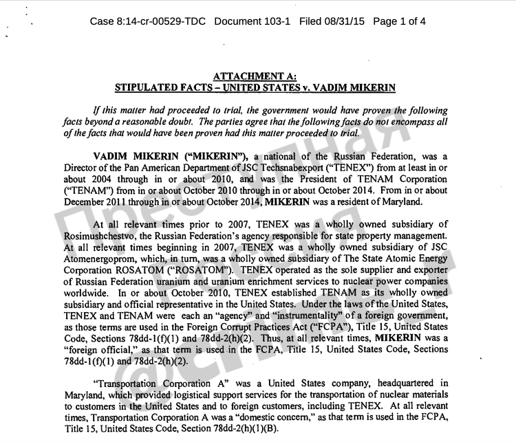 Что касается печально известного американского актива Росатома, то там скандалы вспыхивали и вовсе один за другим на протяжении нескольких лет. Все началось еще в 90-е с российско-американского договора под условным названием «мегатонны — в мегаватты»: в его рамках высокообогащенный уран из российского ликвидируемого ядерного оружия переводили в низкообогащенный, а затем отправляли в США в качестве топлива для реакторов АЭС. Транспортировкой урана в США занимался «Техснабэкспорт» (TENEX). Первый контракт он заключил с американской Transport Logistics International. В этих сделках участвовал сын бывшего замглавы Минатома СССР Вадим Микерин, который после окончания государственной академии внешней торговли устроился в зарубежные структуры Росатома и курировал сотрудничество с США из Москвы, а в 2010 году глава госкорпорации Сергей Кириенко повысил его до президента американской дочки «Техснабэкспорта» — TENAM Corp.
