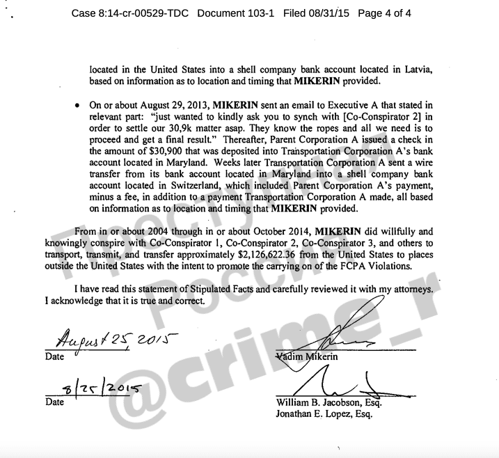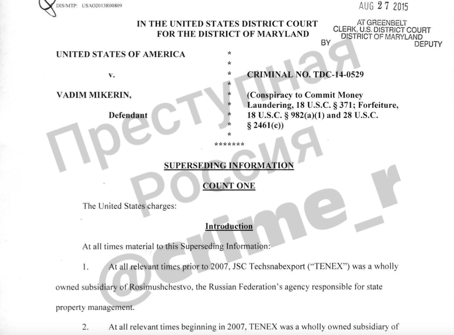 Негуманный американский суд отправил его на 4 года в тюрьму, а затем он был выслан на родину. Но это еще не все. ФБР уверена, что Микерин отстегивал часть взяток в Россию - своему руководству, которое прикрыло схему с завышенной оплатой по контрактам в США, чтобы включить туда суммы на взятки. То есть воровали Микерин и его руководство из российского бюджета. А главой Росатома в эти годы был Сергей Кириенко.